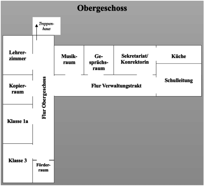 Der Gebäudeplan unterstützt die Orientierung bei uns in der Schule.